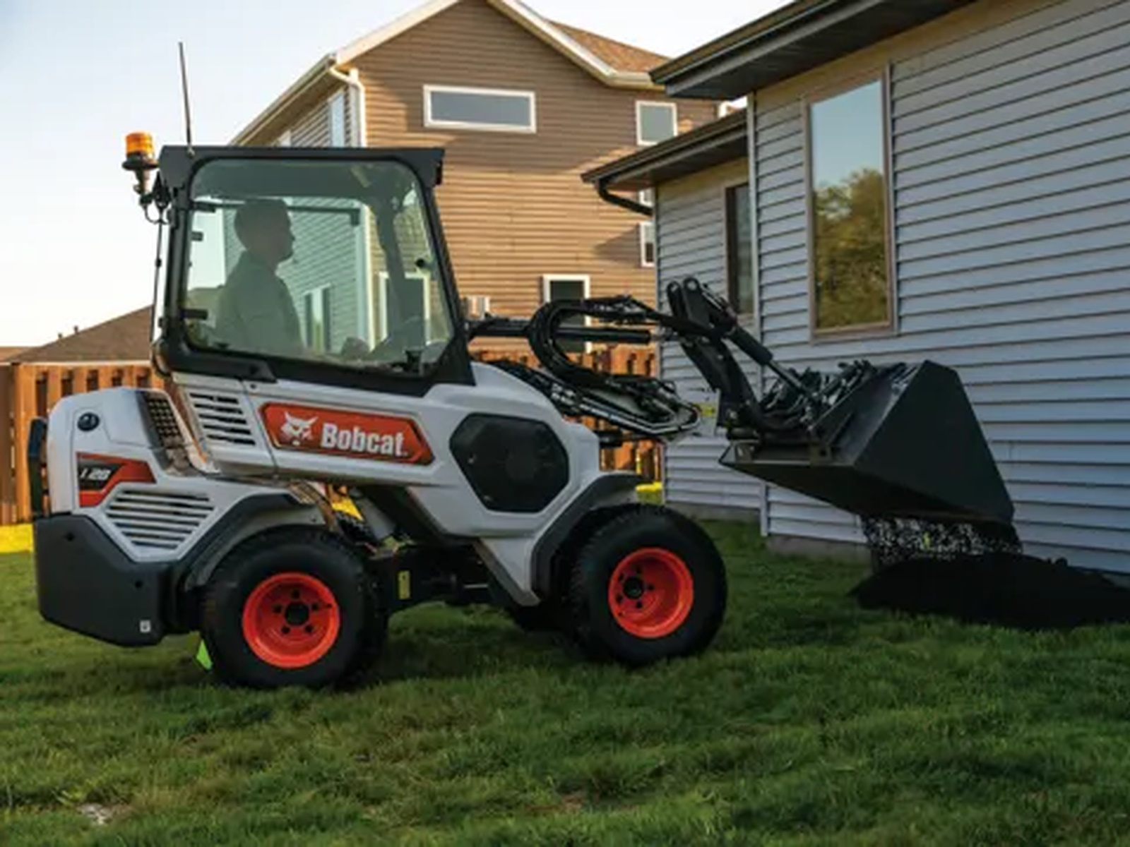 The Bobcat® L28 small articulated loader is a compact machine that easily works inside fenced-in landscapes, pens, backyards and more.